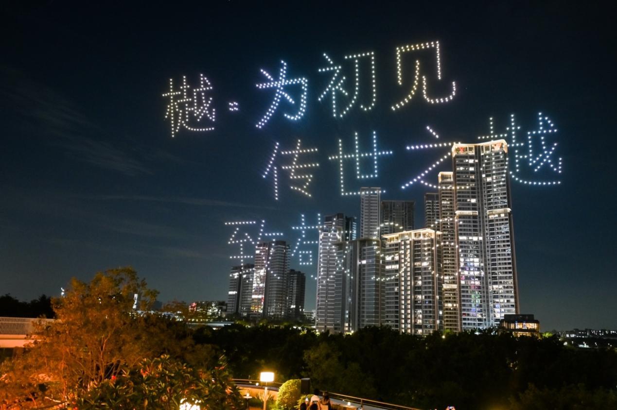 “樾·为初见”传世之樾·致意96发布会于华樾海上会客厅启幕,千架无东谈主机点亮琶洲夜空,开启“华樾”新篇章。